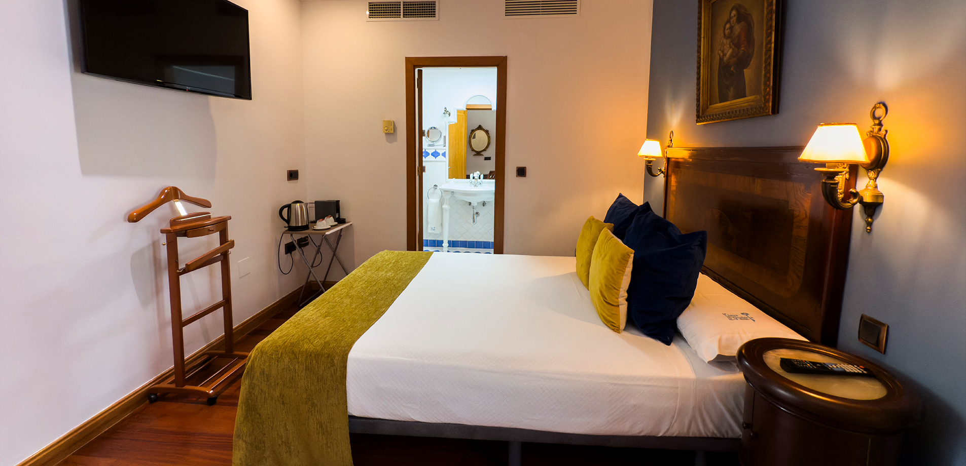 - Wi‑Fi de alta velocidad · Puntos de carga junto a la cama (enchufe/USB)